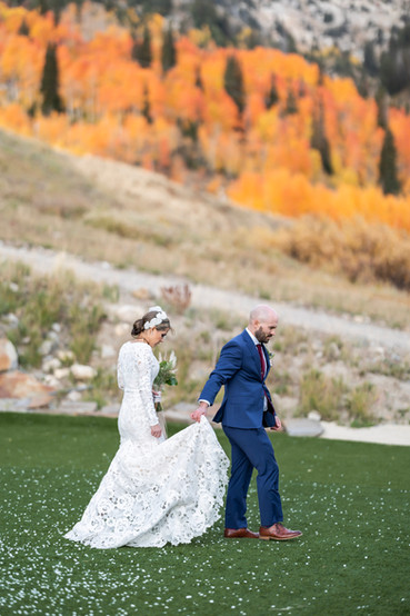 We absolutely LOVED this wedding, the intimate vibe and all the unique details that made it special were perfect for a fall day. The ceremony was held on the outside lawn facing the beautiful mountain peaks of Alta Ski Resort with friends and families, following by a dinner and a fun party.