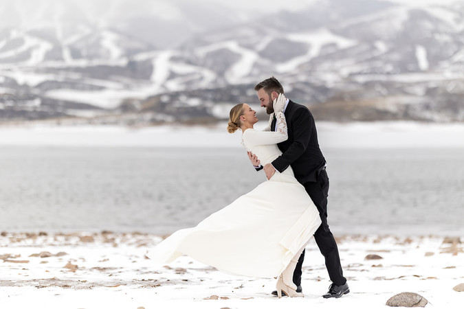 Their ceremony took place at a picturesque frozen lake near Deer Valley Resort. Leti officiated and made the whole process easy and stress-free, making sure their marriage was legal (yes, we’re ordained and can officiate your elopement too!).